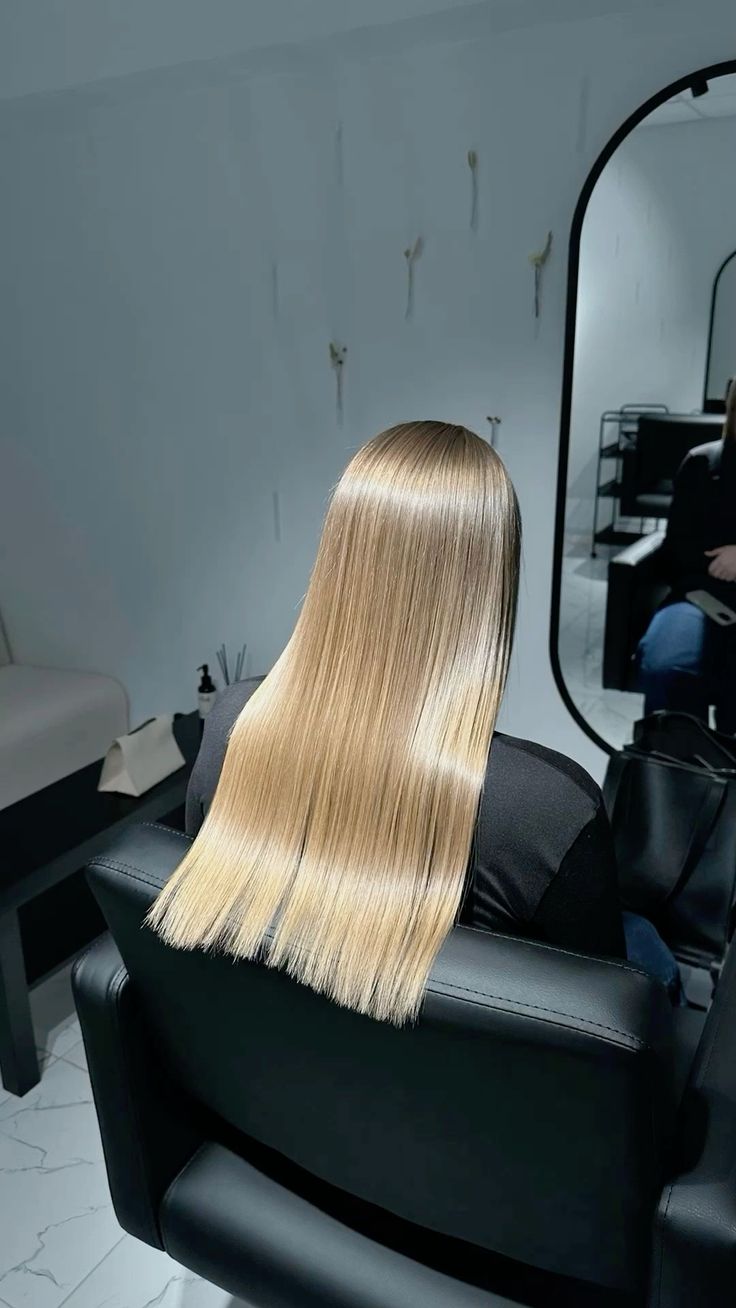 Luxurious blow-dry styling for long hair including smoothing and styling. Perfect for hair past shoulder length.
